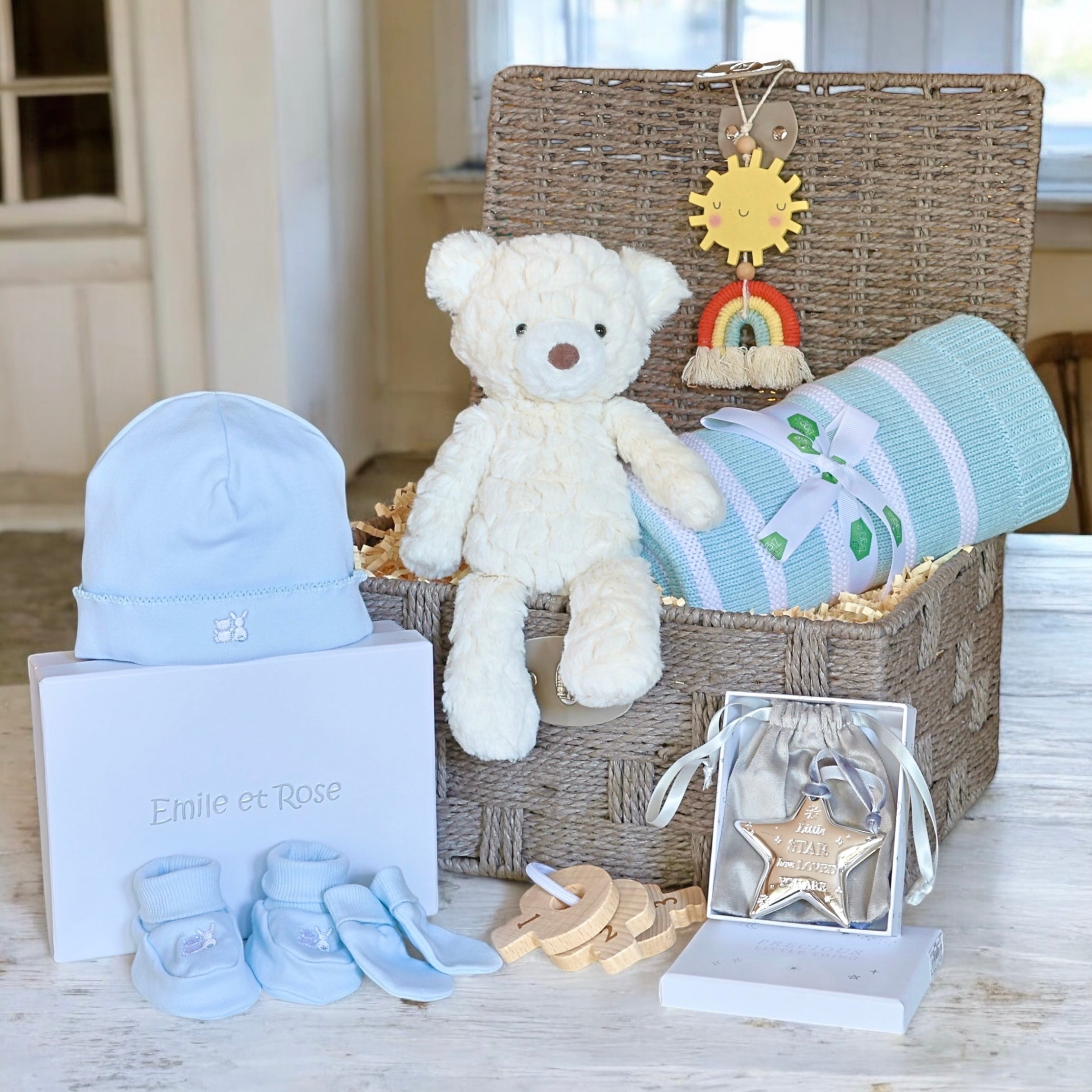 We specialise in thoughtfully curated baby gift hampers, premium newborn presents, and charming keepsakes for new mums and dads, perfect for baby showers, christenings and welcome-to-the-world surprises.